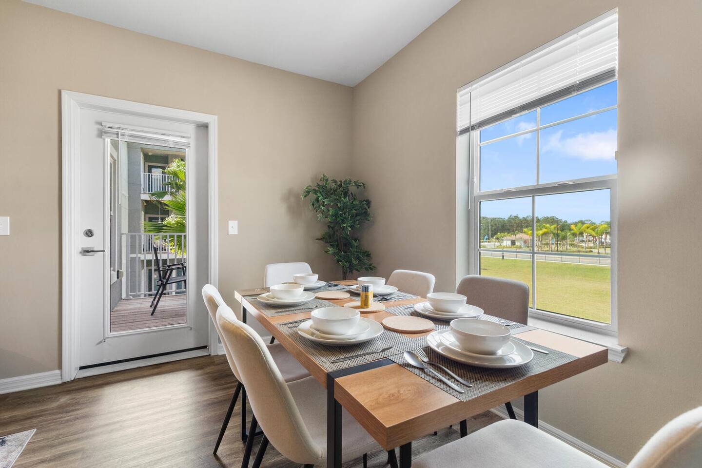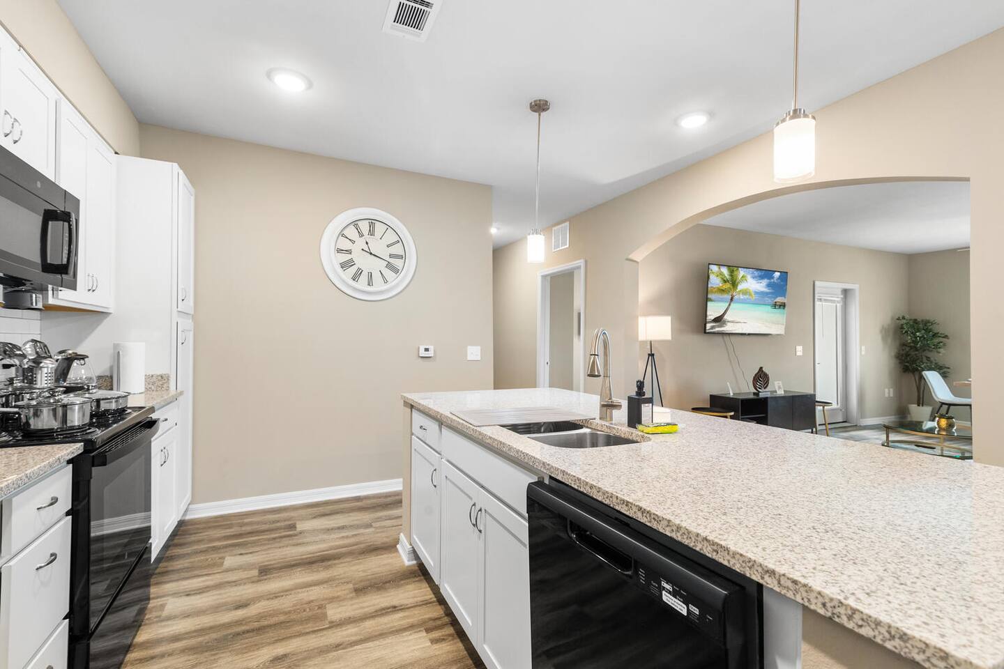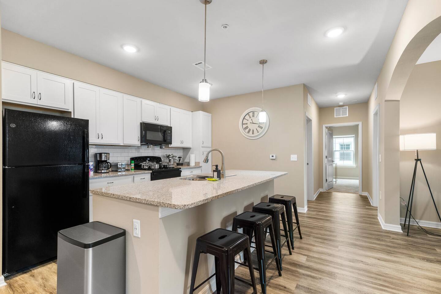 ★ Your Modern Escape | Stylish Comfort Meets Everyday Ease ★ Step into your contemporary sanctuary, where thoughtful design, upscale finishes, and smart amenities come together to create the perfect space for rest, creativity, and connection. 🛋️ LIVING ROOM – Relax & Unwind in Style This cozy yet elegant living space is perfect for downtime or movie nights. ✔ 65” 4K Smart TV with Roku ✔ Plush sectional sofa with soft pillows and blankets ✔ Coffee table for games, snacks, or casual lounging ✔ Office desk & chair for remote work or inspiration 🍽️ KITCHEN & DINING – A True Culinary Haven Fully equipped and thoughtfully stocked for every craving or culinary moment. ✔ Appliances: Stove, oven, microwave, fridge + freezer, dishwasher ✔ Amenities: Toaster, Brita water filter, coffee machine (with ground coffee), electric kettle ✔ Hot/cold water sink, complete cookware, and dining essentials ✔ Dining table with 4 chairs — perfect for meals or morning coffee with a side of entertainment 🛏️ BEDROOMS – Tranquil & Thoughtfully Designed Recharge in cozy, stylish rooms made for a restful escape. ✔ Queen beds with high-quality pillows and linens ✔ Spacious wardrobes for neat storage ✔ 40” 4K Smart TVs with Roku in each bedroom for personalized entertainment 🛁 BATHROOMS – Clean, Spacious, & Refreshing Your private retreat for reset and self-care. ✔ Bathtub and shower combo for relaxing or refreshing ✔ Toiletries provided: Toothpaste, shampoo, conditioner, shower gel ✔ Fresh towels, mirror, and all essentials included 🌟 Additional Amenities for Elevated Comfort ✔ In-unit washer and dryer for full convenience ✔ On-site gym — stay active during your trip ✔ Complimentary parking for easy arrivals ✔ High-speed Wi-Fi for seamless streaming or work ✔ Central air conditioning for personalized climate control 📍 Proximity Highlights – Explore the Best of Melbourne 🚗 5 mins to Andretti Thrill Park 🏖️ 10 mins to Melbourne Beach ⚾ 15–20 mins to USSSA Space Coast Complex 🛍️ 10–20 mins to Costco, Walmart & local shopping 🚀 20–30 mins to Cape Canaveral & Kennedy Space Center ✨ Your Ultimate Melbourne Retreat Awaits Whether you’re here for a beach escape, a business trip, or a little of both, this modern haven delivers the perfect balance of comfort, convenience, and style. Book now and enjoy the elevated experience you deserve.