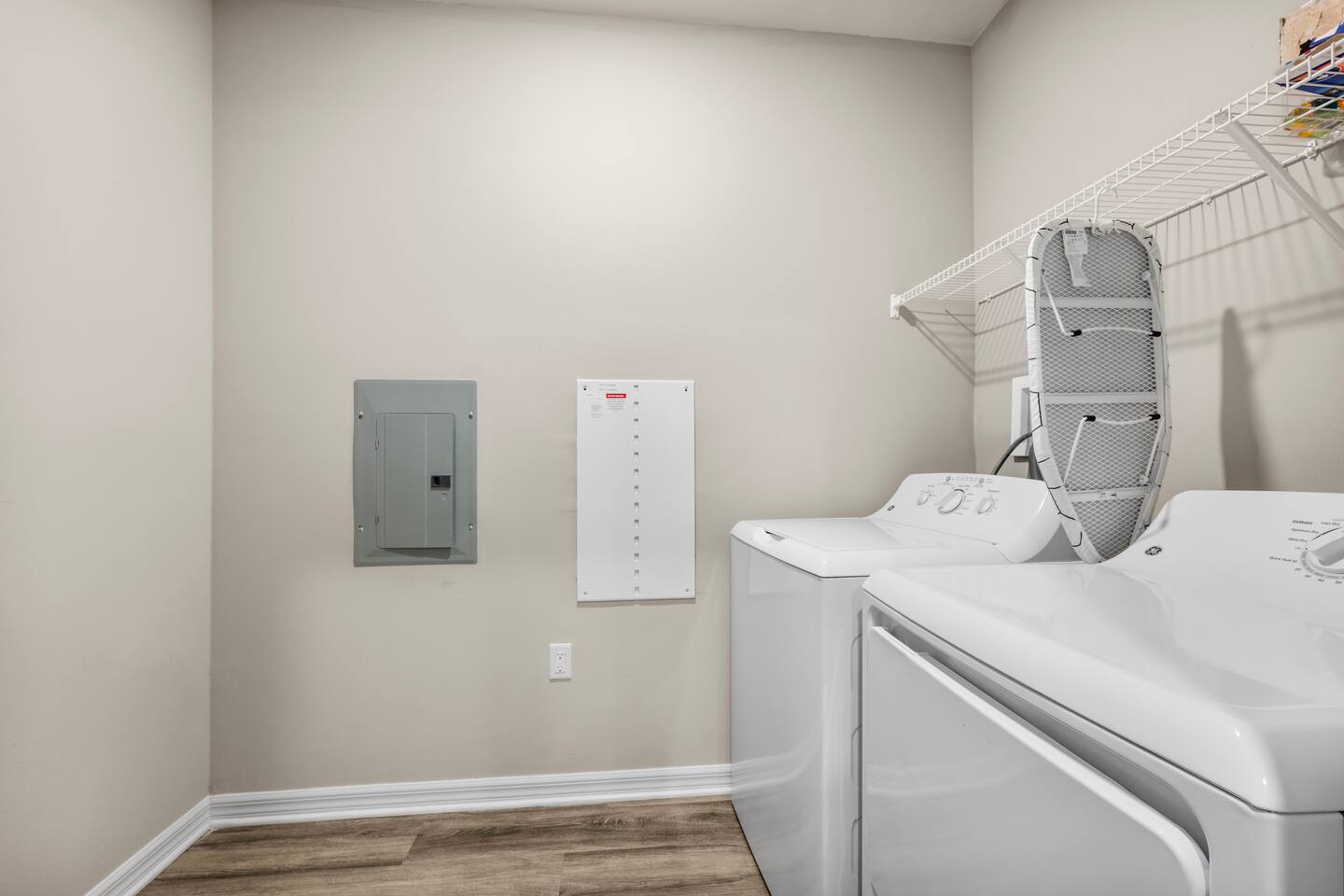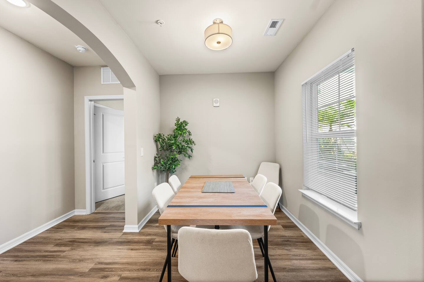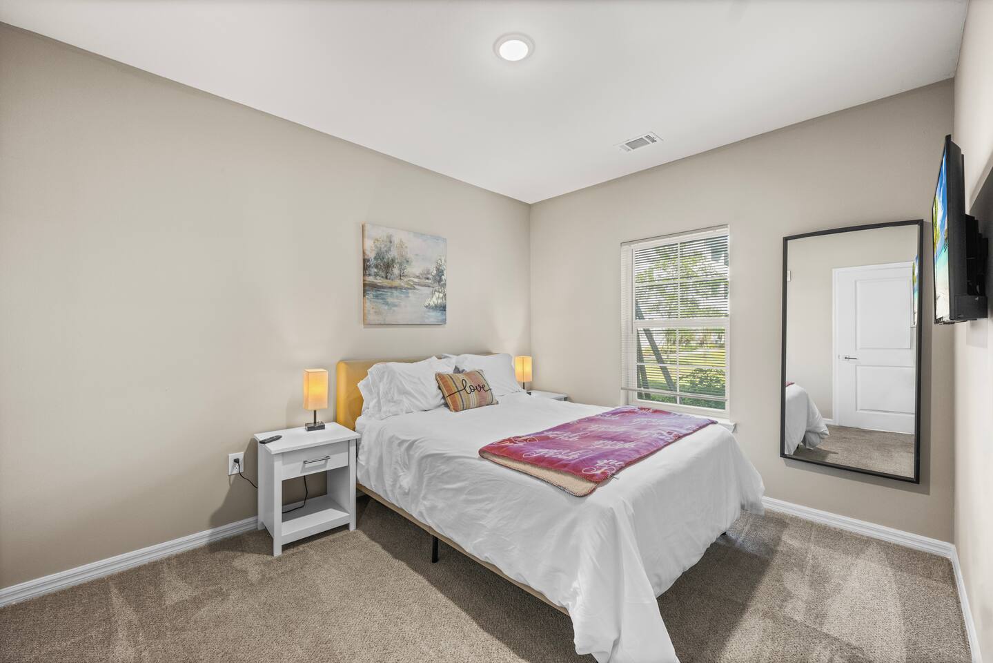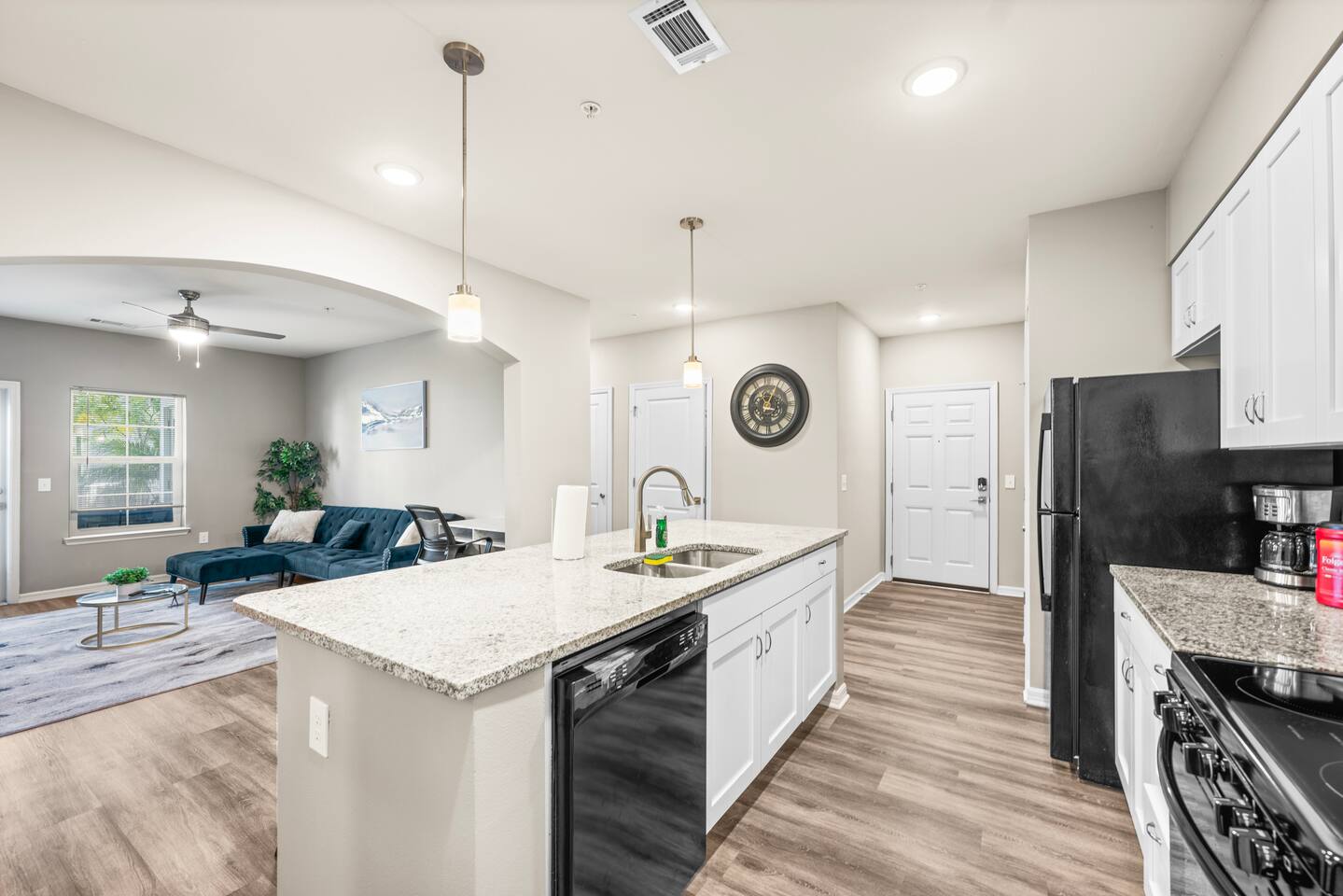 ★ Contemporary Oasis ★ Step into your meticulously curated retreat — a modern, ground-floor haven thoughtfully designed to blend style, function, and total relaxation. With upscale amenities, tasteful décor, and seamless accessibility (no stairs inside or out), this space invites you to unwind the moment you arrive. ★ Convenient Ground-Floor Access Enjoy a stress-free check-in and smooth mobility throughout your stay with direct, stair-free entry — perfect for travelers with luggage, kids, or anyone looking for ease and comfort. ★ LIVING AREA: Unwind in Comfort Whether you're curling up with a good movie or enjoying downtime with loved ones, the living space is your cozy centerpiece. ✔ 65” 4K Smart TV with Roku for premium streaming ✔ Plush sectional sofa adorned with soft pillows and blankets ✔ Coffee table for relaxed moments and evening chats ✔ Sleek office desk and chair — ideal for remote work or planning your next adventure ★ KITCHEN & DINING: Culinary Delights Everything you need to whip up a gourmet meal or a quick snack is right here in your fully stocked kitchen. ✔ Full suite of appliances: stove, oven, microwave, refrigerator, freezer, dishwasher ✔ Thoughtful extras: toaster, Brita water filter, coffee machine (with ground coffee), electric kettle ✔ Cookware, utensils, and essentials ready to go ✔ Cozy dining space with seating for four ★ BEDROOMS: Serene Retreat Recharge in two thoughtfully designed bedrooms offering peaceful, hotel-like comfort. ✔ Queen beds with soft pillows, quality linens, and cloud-like bedding ✔ Smart TVs for personalized in-bed entertainment ✔ Spacious wardrobes and storage to keep your space clutter-free ★ BATHROOMS: A Revitalizing Experience Refresh and rejuvenate in a spacious bathroom fully stocked with everything you need. ✔ Bathtub/shower combo for both quick rinses and relaxing soaks ✔ Soft towels, quality toiletries, and essentials provided for your convenience ★ Additional Amenities for Your Convenience ✔ In-unit washer and dryer for stress-free laundry ✔ High-speed Wi-Fi — ideal for streaming, video calls, and remote work ✔ Central A/C for personalized climate control ✔ Complimentary parking right outside ✔ Access to the on-site gym — stay active during your stay ★ Proximity Highlights — Explore with Ease • 5 mins to Andretti Thrill Park — go-karts, arcade, and family fun • 10 mins to Melbourne Beach — sun, surf, and scenic walks • 15–20 mins to USSSA Space Coast Complex • 10–20 mins to Costco, Walmart, and major shopping centers • 20–30 mins to Cape Canaveral & Kennedy Space Center This thoughtfully designed oasis offers more than just a place to sleep — it delivers a full lifestyle experience, where convenience, comfort, and modern luxury intersect. Whether you’re visiting for work, leisure, or a bit of both, this is your home base for everything the Space Coast has to offer. Book now and experience the elevated comfort of your ultimate retreat.