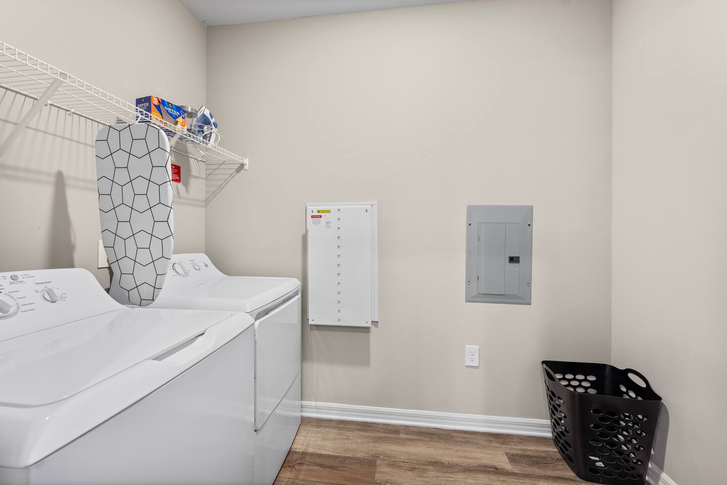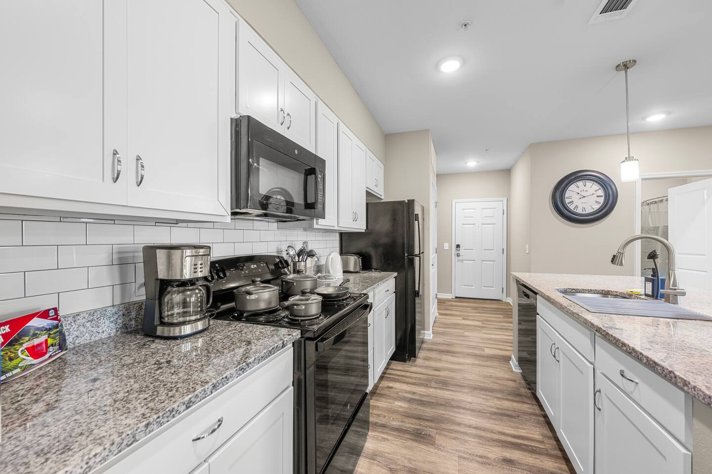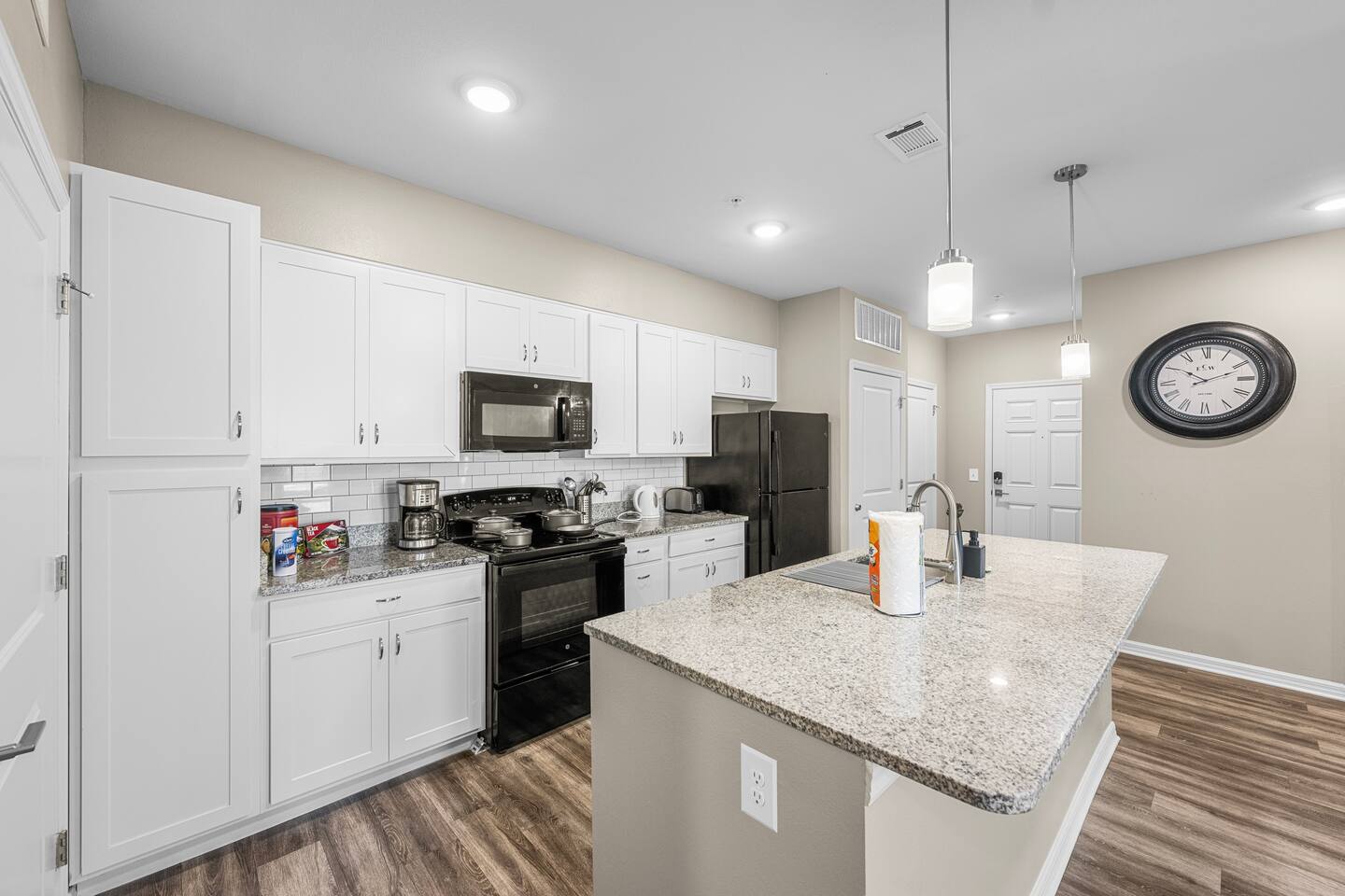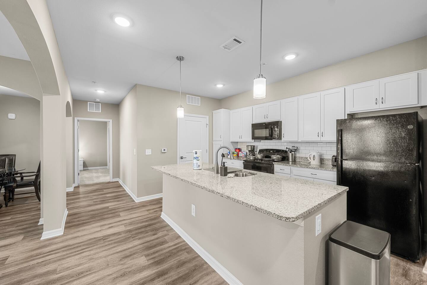 ★ Contemporary Oasis ★ Prepare to be captivated by this meticulously curated contemporary haven, featuring impeccable amenities and an inviting ambiance. ★ Convenient Ground-Floor Access Accessible without stairs, this ground-floor retreat ensures a seamless entry, providing an effortless start to your stay. ★ LIVING AREA: Unwind in Comfort At the heart of comfort, this cozy space invites relaxation and cherished moments with loved ones. ✔ 65” Flat-Screen 4K Smart TV with Roku ✔ Plush Sofa Sectional adorned with Inviting Pillows and Blankets ✔ Coffee Table for Tranquil Moments ✔ Stylish Office Desk and Chair for Work or Creativity ★ KITCHEN & DINING: Culinary Delights Discover a fully-equipped kitchen that beckons culinary exploration. ✔ Comprehensive Range of Appliances: Stove, Oven, Microwave, Refrigerator + Freezer, Dishwasher ✔ Convenient Amenities: Toaster, Brita Water Filter, Coffee Machine with Ground Coffee, Electric Kettle ✔ Complete Cookware Setup ✔ Cozy Dining Space for Four ★ BEDROOMS: Serene Retreat Indulge in restful nights within these thoughtfully designed sleeping quarters. ✔ Queen Beds adorned with Plush Pillows, Linens, and Sheets ✔ Smart TVs for Your Entertainment Pleasure ✔ Ample Wardrobes for Convenient Storage ★ BATHROOMS: Revitalizing Experience Rejuvenate in spacious, fully-stocked bathrooms offering all you need for a refreshing stay. ✔ Bathtub and Shower for Relaxation ✔ Complimentary Toiletries, Fresh Towels, and Essentials ★ Additional Amenities★ ✔ In-Unit Washer and Dryer for Added Convenience ✔ On-Site Gym within the Complex for Fitness Enthusiasts ✔ Complimentary Parking for Hassle-Free Arrival ✔ High-Speed Wi-Fi for Seamless Connectivity ✔ Central Air Conditioning for Personalized Climate Control ★ Proximity Highlights ★ Explore the vibrant surroundings: • 2-3 mins drive to Andretti Thrill Park • 5-10 mins drive to Melbourne Beach • 15-20 mins drive to USSSA Space Coast Complex • Convenient Access to Shopping, Dining, and Activities • 10-15 mins to Costco and Walmart • 20-30 mins drive to Cape Canaveral This meticulously crafted space promises a fusion of comfort, convenience, and modernity, ensuring an extraordinary stay. Welcome to your ultimate retreat!