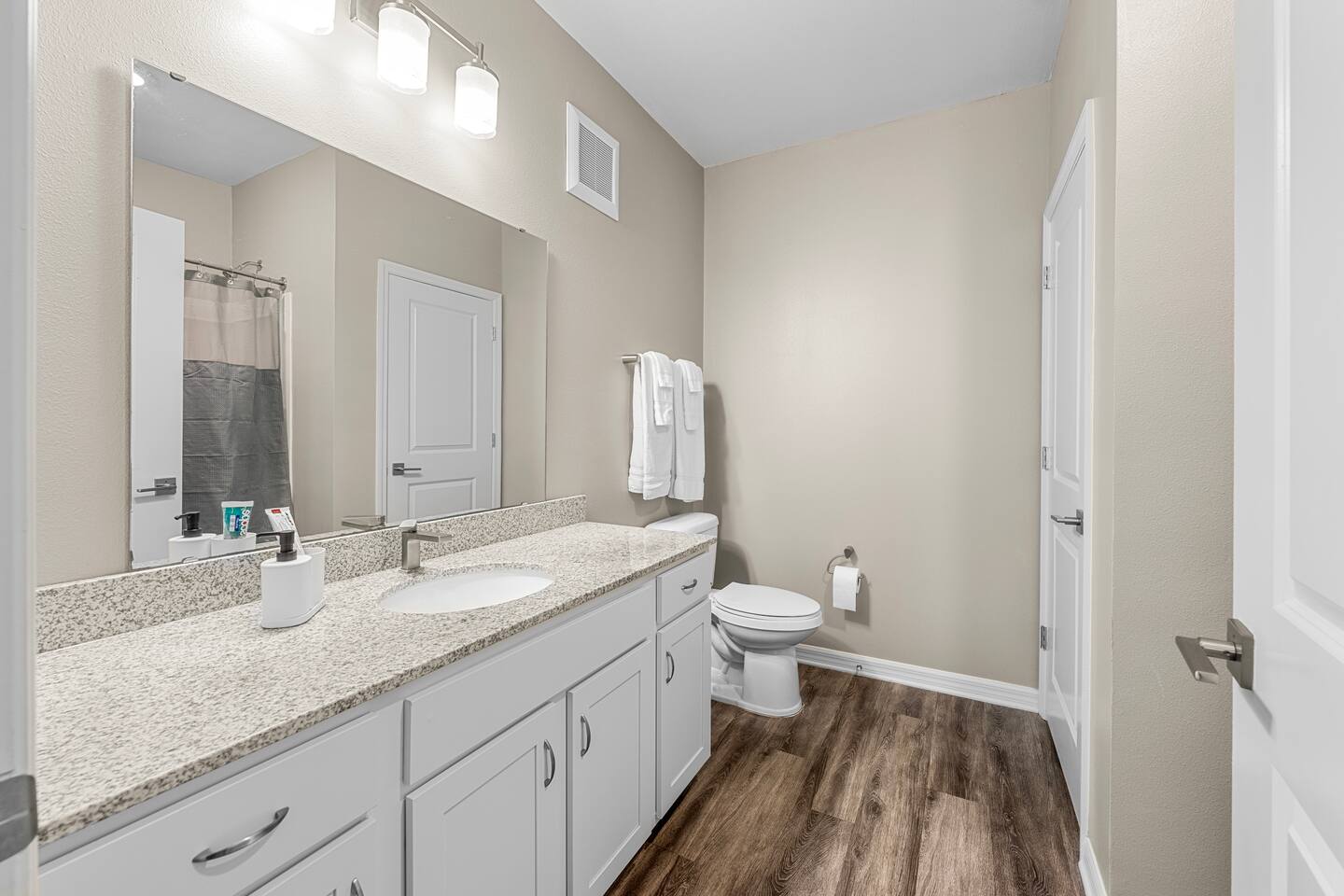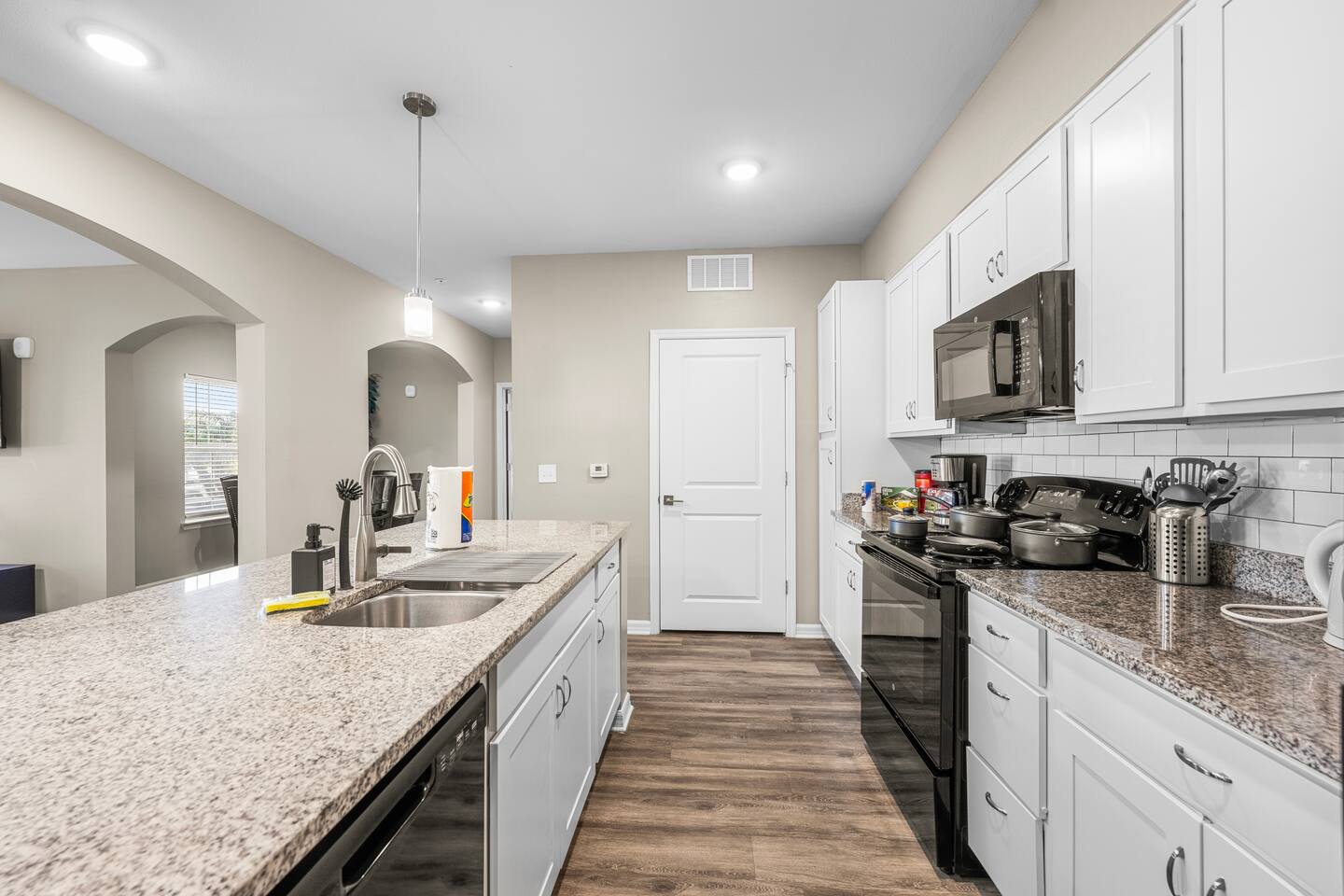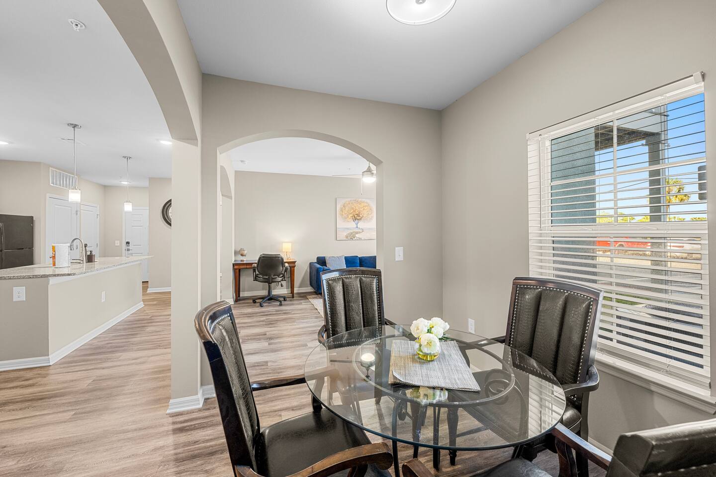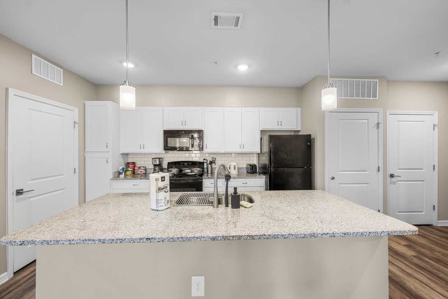 ★ Contemporary Oasis ★ Prepare to be captivated by this meticulously curated contemporary haven, featuring impeccable amenities and an inviting ambiance. ★ Convenient Ground-Floor Access Accessible without stairs, this ground-floor retreat ensures a seamless entry, providing an effortless start to your stay. ★ LIVING AREA: Unwind in Comfort At the heart of comfort, this cozy space invites relaxation and cherished moments with loved ones. ✔ 65” Flat-Screen 4K Smart TV with Roku ✔ Plush Sofa Sectional adorned with Inviting Pillows and Blankets ✔ Coffee Table for Tranquil Moments ✔ Stylish Office Desk and Chair for Work or Creativity ★ KITCHEN & DINING: Culinary Delights Discover a fully-equipped kitchen that beckons culinary exploration. ✔ Comprehensive Range of Appliances: Stove, Oven, Microwave, Refrigerator + Freezer, Dishwasher ✔ Convenient Amenities: Toaster, Brita Water Filter, Coffee Machine with Ground Coffee, Electric Kettle ✔ Complete Cookware Setup ✔ Cozy Dining Space for Four ★ BEDROOMS: Serene Retreat Indulge in restful nights within these thoughtfully designed sleeping quarters. ✔ Queen Beds adorned with Plush Pillows, Linens, and Sheets ✔ Smart TVs for Your Entertainment Pleasure ✔ Ample Wardrobes for Convenient Storage ★ BATHROOMS: Revitalizing Experience Rejuvenate in spacious, fully-stocked bathrooms offering all you need for a refreshing stay. ✔ Bathtub and Shower for Relaxation ✔ Complimentary Toiletries, Fresh Towels, and Essentials ★ Additional Amenities★ ✔ In-Unit Washer and Dryer for Added Convenience ✔ On-Site Gym within the Complex for Fitness Enthusiasts ✔ Complimentary Parking for Hassle-Free Arrival ✔ High-Speed Wi-Fi for Seamless Connectivity ✔ Central Air Conditioning for Personalized Climate Control ★ Proximity Highlights ★ Explore the vibrant surroundings: • 2-3 mins drive to Andretti Thrill Park • 5-10 mins drive to Melbourne Beach • 15-20 mins drive to USSSA Space Coast Complex • Convenient Access to Shopping, Dining, and Activities • 10-15 mins to Costco and Walmart • 20-30 mins drive to Cape Canaveral This meticulously crafted space promises a fusion of comfort, convenience, and modernity, ensuring an extraordinary stay. Welcome to your ultimate retreat!
